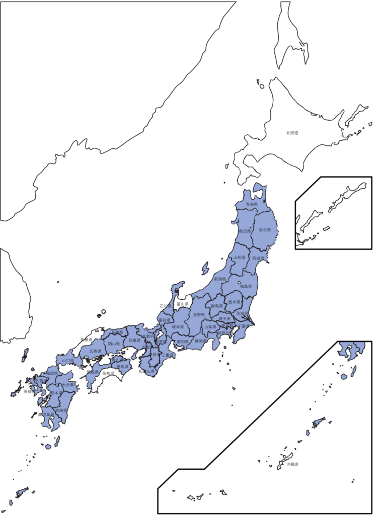 - 色がついていない都道府県については、お問い合わせフォームよりご相談下さい。
