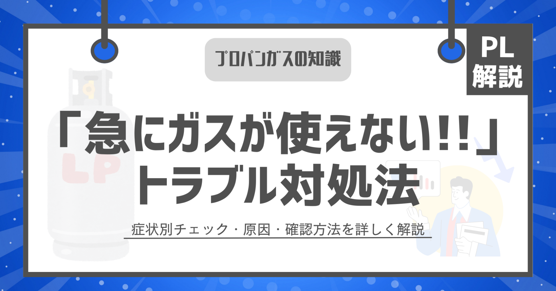 プロパンガスが突然使えなくなった場合は、症状ごとに原因を整理することで落ち着いて対応しやすくなります。